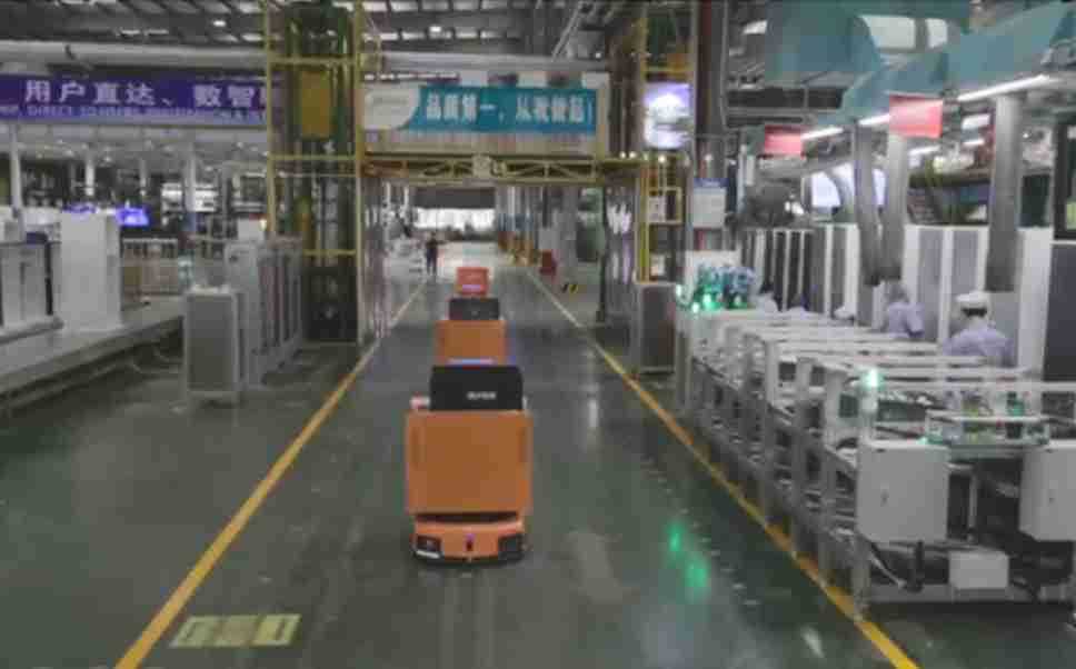 为车载冰箱物流配送打造的智能解决方案,,,包含产中物流通过潜伏举升AMR搬运至线边,,,产后成品物流智能仓储,,,流程包含产中物流智能齐套入库,,,线边安灯叫料AMR智能配送至线边,,成品入库、、、、出库,,,,通过无人堆高车机器人,,,,智能仓储管理替代人工作业管理,,实现更高存储、、更高效率、、更具柔性化的解决方案。。